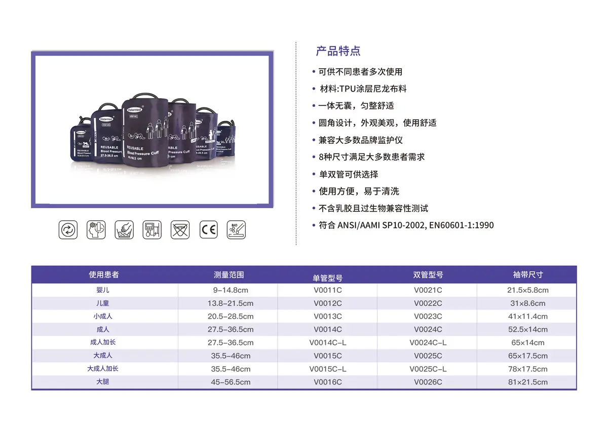 V01 / 重复性PU皮料血压袖带